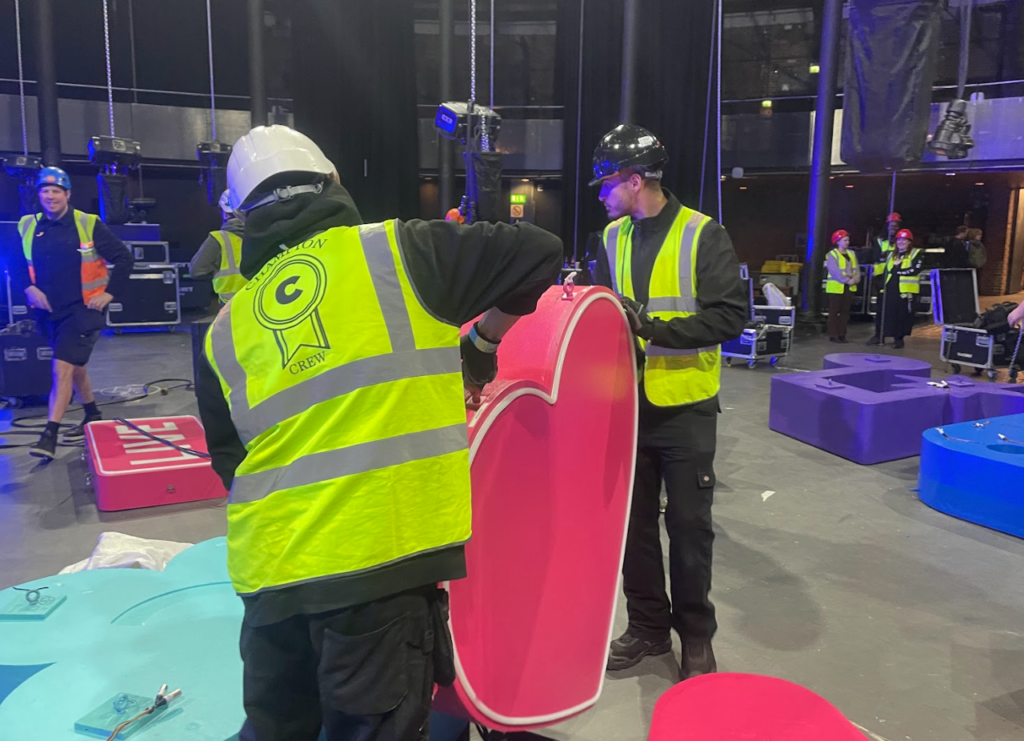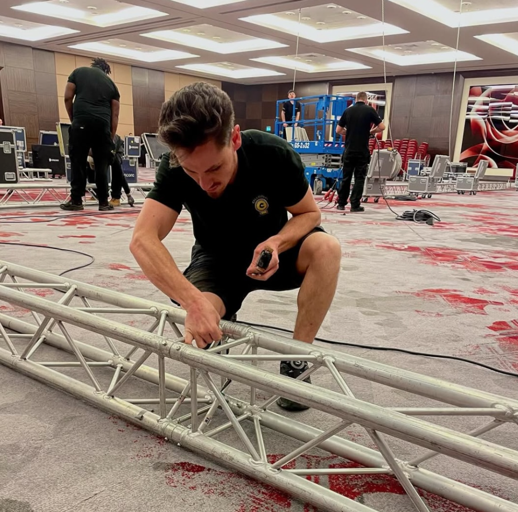 Crew who are competent in building hanging truss, lighting towers or assisting with rigging motors.